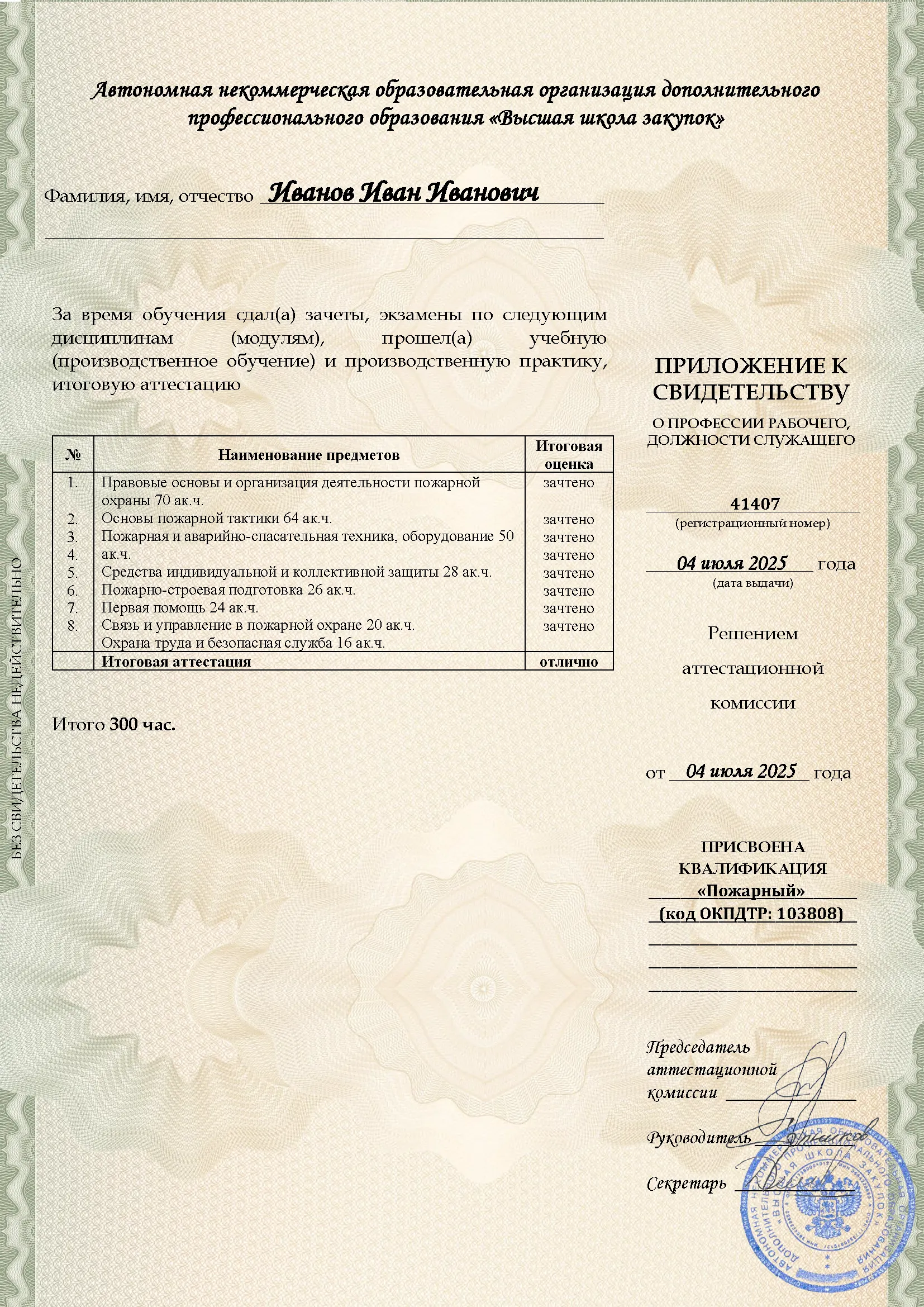 Профессиональное обучение, 300 академических часов, 8 модулей: законодательство и нормативные акты в области пожарной безопасности, тактика тушения пожаров и проведение аварийно-спасательных работ, устройство и использование пожарно-технического вооружения, оказание первой помощи. Онлайн-обучение в в Краснодаре с итоговой аттестацией.