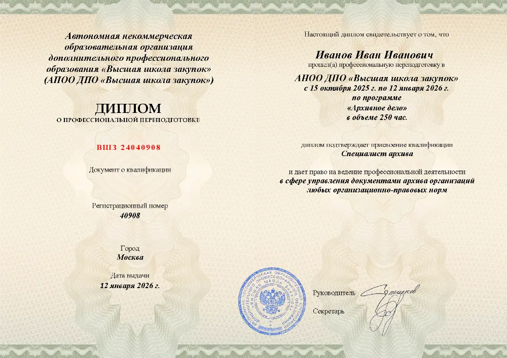Программа профессиональной переподготовки (250 часов) для специалистов по архивному делу. Освойте правовые основы управления документами, технологии делопроизводства, оцифровку и организацию работы электронного архива с экспертизой ценности документов. Онлайн-обучение в в Краснодаре с итоговой аттестацией.
