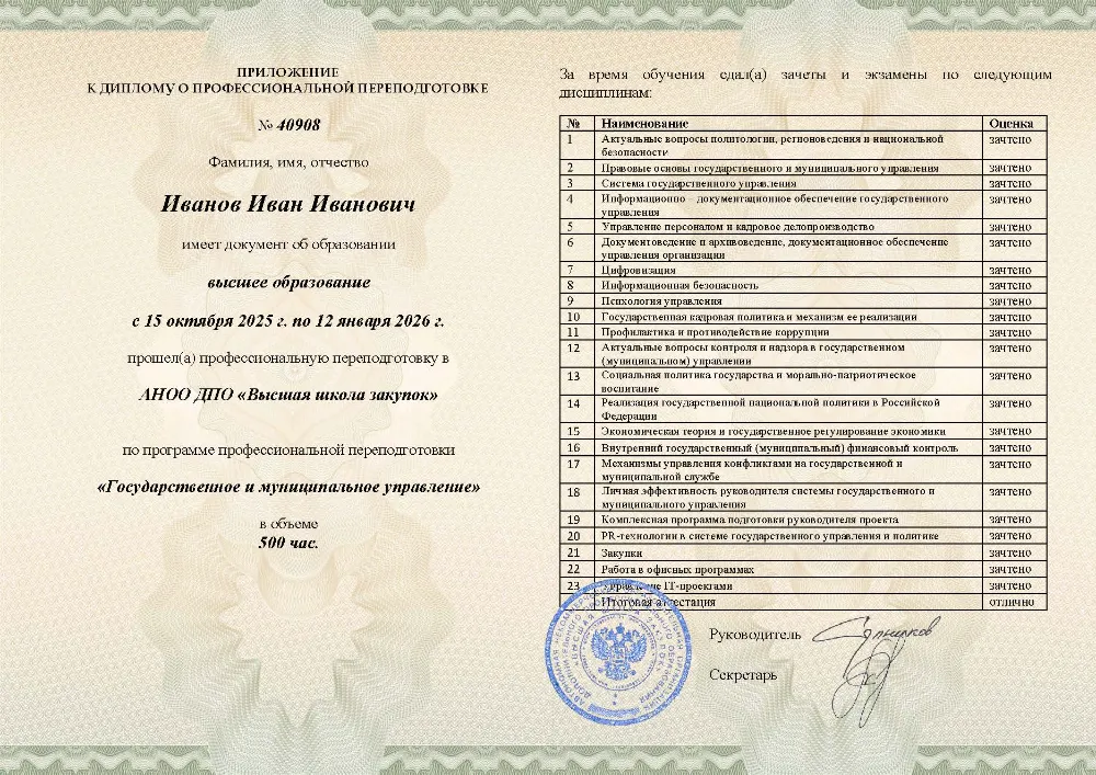 Профессиональная переподготовка, 500 академических часов, 25 модулей: правовые основы и система государственного управления, управление персоналом, финансами и противодействие коррупции, социальная политика и экономическое регулирование, цифровизация, закупки и информационная безопасность. Онлайн-обучение в в Краснодаре с итоговой аттестацией.